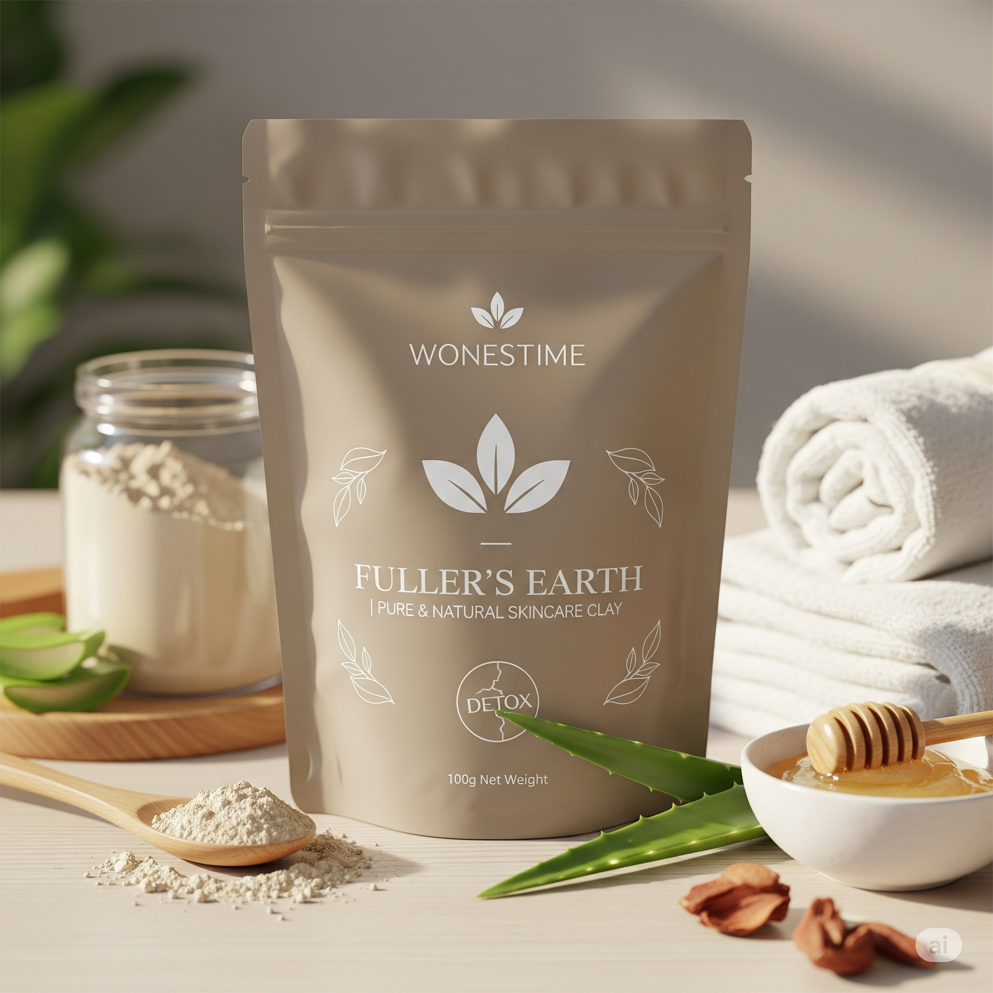 WONESTIME 100% Natural Fuller's Earth (Multani Mitti) – 200g | Deep Cleansing Face Pack for Oily & Acne-Prone Skin